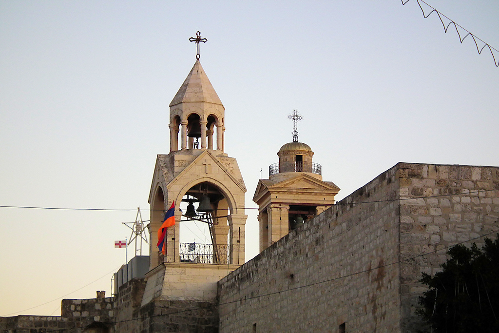 Down the passageway and some steps leading from the market I was accosted by a sweet-seller. He asked how arre you, as they do, and I joked back hamdulillah – thanks God (I’m okay). It was a joke because, last time I was here, I couldn’t manage responses in Arabic. He has a hand-pushed cart parked at the top of the main steps down toward the Omar Mosque and Manger Square. Palestinian sweets are gooey, rich, soft cakes of honey, almond and who knows what, often eaten by dropping a cubic inch of the stuff straight into the mouth and swilling it down with coffee. I got some, in order to augment my weight-gain programme. Yes, folks, one of the ways I differ from many people is that I’m thin and bony, so I actually have to eat calorie-rich things to gain weight.