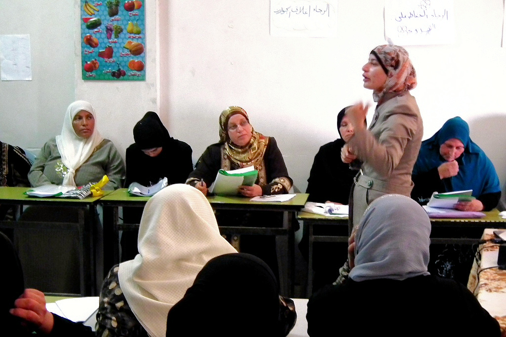 Today the subject was food hygiene. The purpose is to give women the necessary training to start cooperatives and create work for themselves. They were studying microbes, hygiene and infections, as well as nutritional issues, proteins, carbohydrates and balanced diets. They discussed the E. coli
