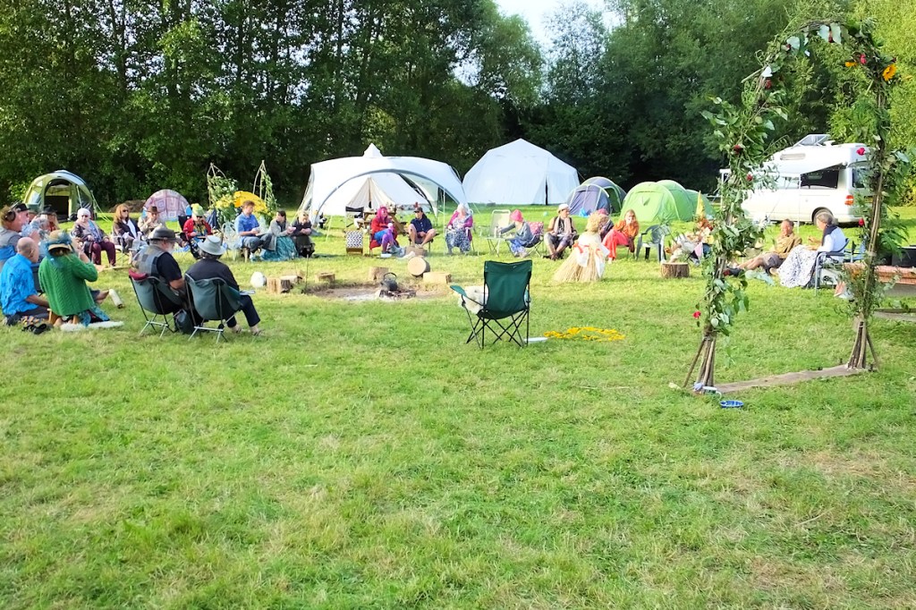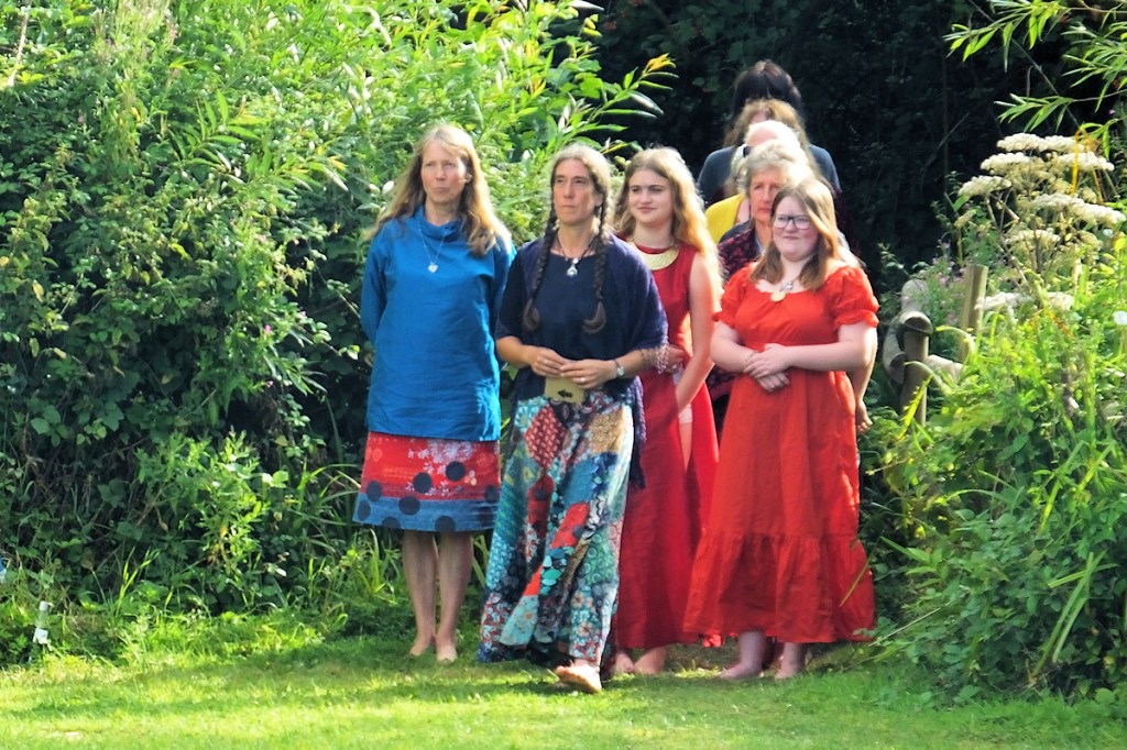 At the camp we (mainly the women) did an overnight a Rite of Passage for two sixteen-year old women who had been formerly toddlers and children in earlier camps. These are people who will take things on into future times, as the Millennials grow older. The women took them through initiations and teachings in the evening, the two slept out alone in a neighbouring field, and they were welcomed back as women next day – dressed replendently in red and blessed by the whole family, young and old. Would that more youngsters could have such initiatory treatment.
