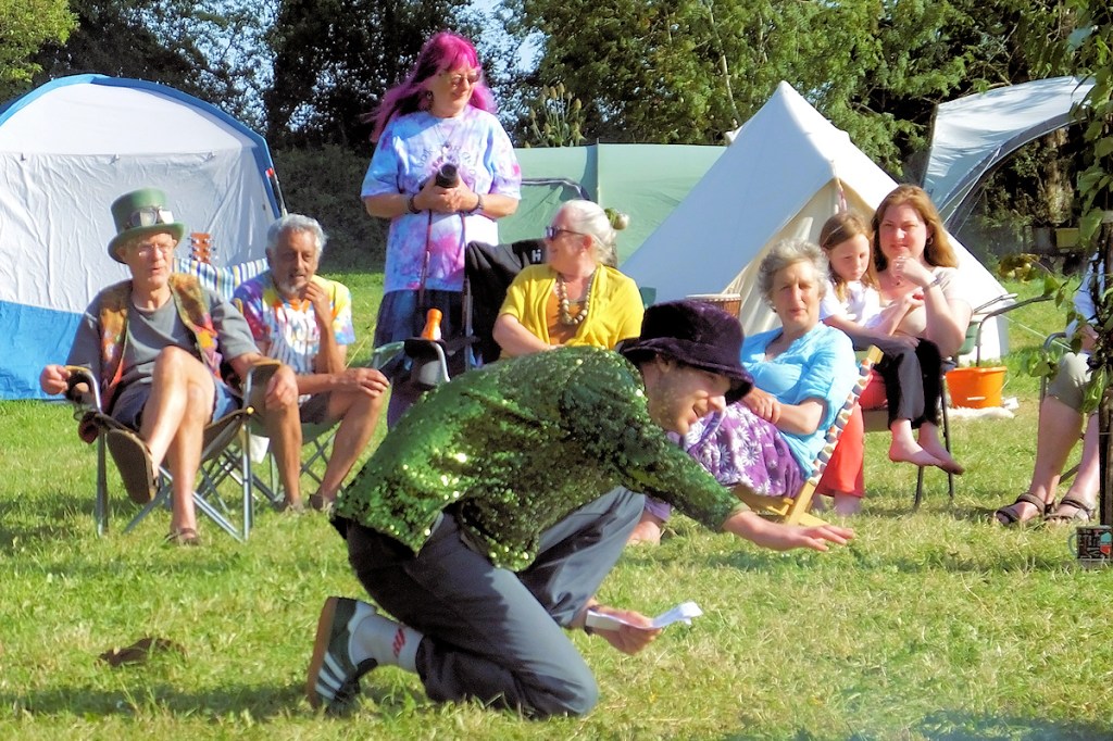 There was a forging workshop and a wood-bodging workshop throughout the camp, and other things too – workshops, ceremonies, group processes and campfire circles – evolved over the years and forming the particular character of the Oak Dragon. There’s no entertainment except what we create – even so, the cabaret at the end, put together by participants, is spontaneously comical.